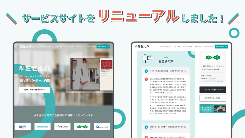 バーチャル内覧サービス『ミセルバ』の導入事例コンテンツをリニューアルしました。