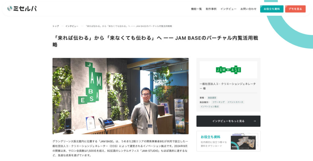 本インタビューでは、遠方企業に向けた施設の魅力訴求や、テナント誘致・貸会議室利用促進といった用途において、ミセルバがどのように活用されているかをご紹介しています。